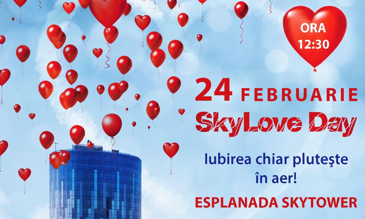 Pe 24 februarie, de Dragobete, SkyTower celebrează SkyLove Day, un eveniment unic dedicat iubirii, marcat și în acest an prin lansarea a aproximativ 1.000 de baloane roșii biodegradabile de pe esplanada din fața SkyTower.