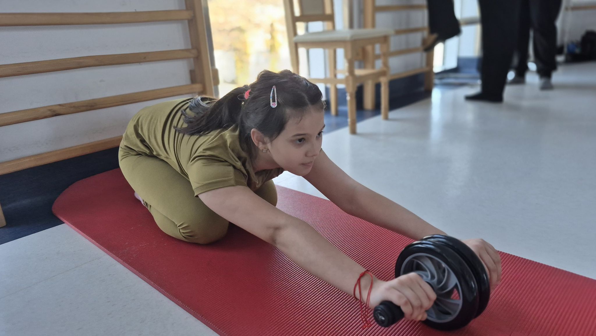 Timp de șase luni, fetița a participat regulat la ședințele de kinetoterapie, exercițiile fiind adaptate pentru corectarea posturii și pentru susținerea alinierii corecte a coloanei vertebrale. Terapia a completat recomandarea medicală de purtare a corsetului, element esențial în tratamentul scoliozei la vârste fragede.